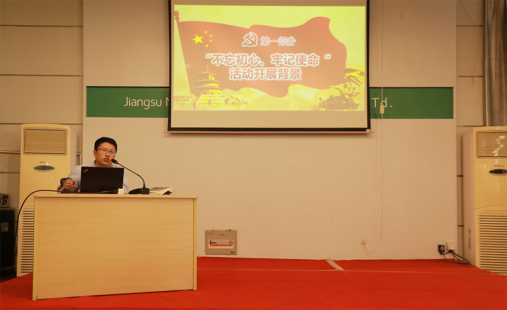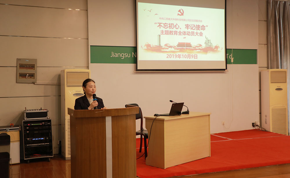 2019年10月9日, 公司召开“不忘初心、牢记使命”主题教育动员大会,进一步激发全体党员干部的工作热情和奋斗精神。公司总经理吕振华出席会议并作指导讲话,党总支书记陈标作动员讲话,党总支组织委员骆玉琴主持会议,党总支宣传委员臧传利作主题教育专题党课。公司领导班子成员,党总支委员、全体中层干部,全体党员及入党积极分子参加会议。