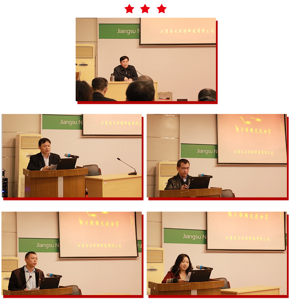 会上,公司党总支书记陈标同志作《中国稳健前行是“中国共产党独特而强大的组织优势”》专题报告,号召全体党员认真学习领会十九届四中全会精神,实践并发展好党的组织优势,做强公司业务,做好环保事业。张建春、段树祥、张彬、张培娟等党员代表分享了自己“不忘初心、牢记使命”主题教育学习的心得与体会,并表示在以后的工作中将继续保持初心,树立责任担当意识,为公司发展贡献出自己的力量。